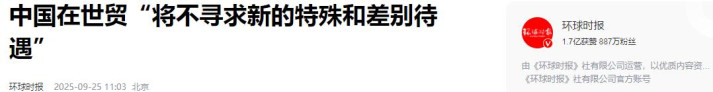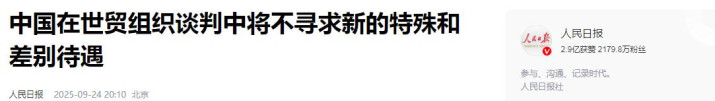 当地时间9月23日,第80届联合国大会现场,中国代表向世界发出一则简短而有力的声明。没有预演的宣传造势,没有冗长的政策解读,但这句话迅速传遍了全球各大媒体:“中国作为负责任的发展中大国,在世贸组织当前和未来谈判中将不寻求新的特殊和差别待遇。”